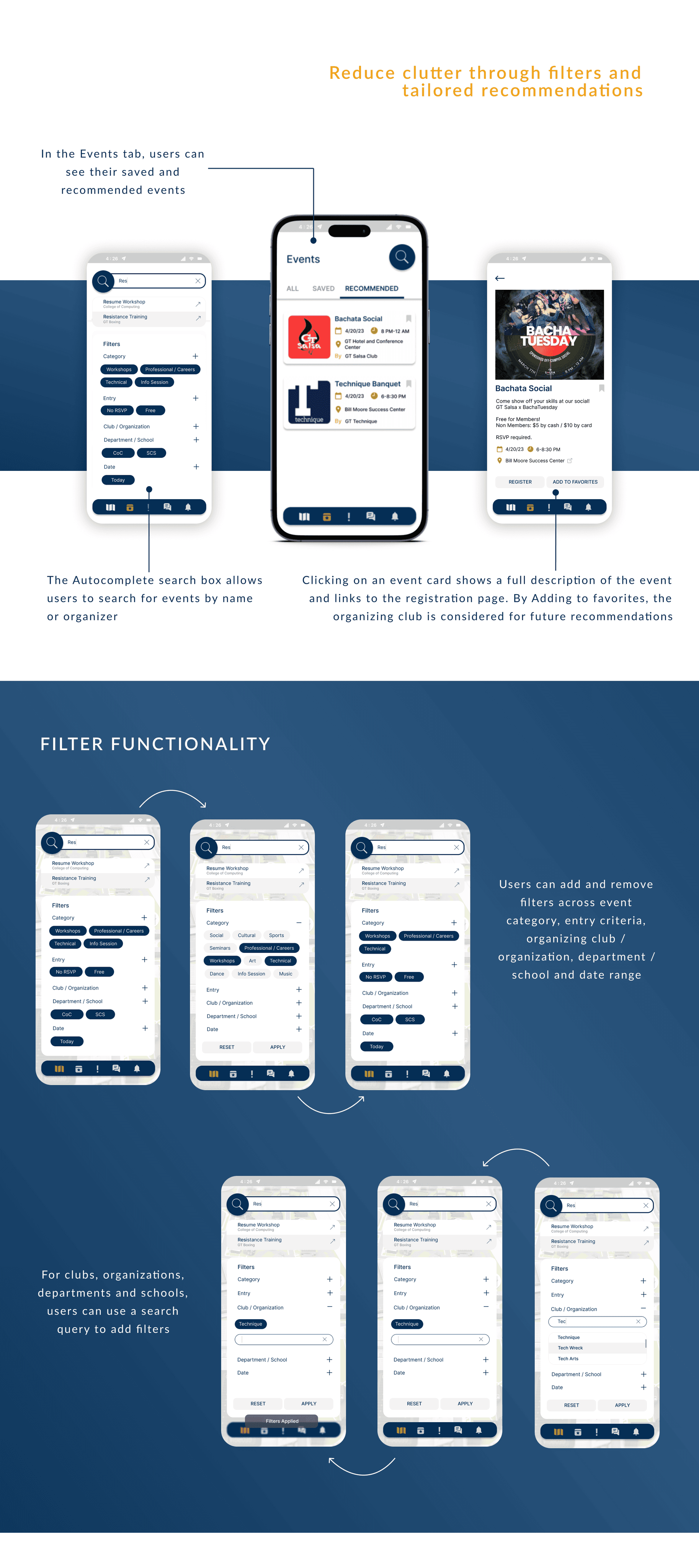 To reduce the influx of information, how do we tailor event recommendations using filters and user behavior?