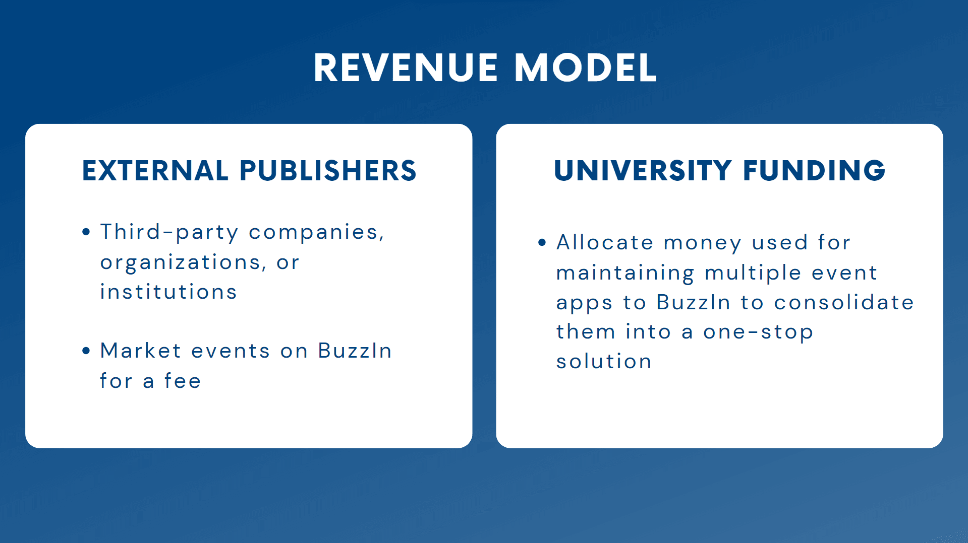 Buzzin has two primary sources of revenue and funding.