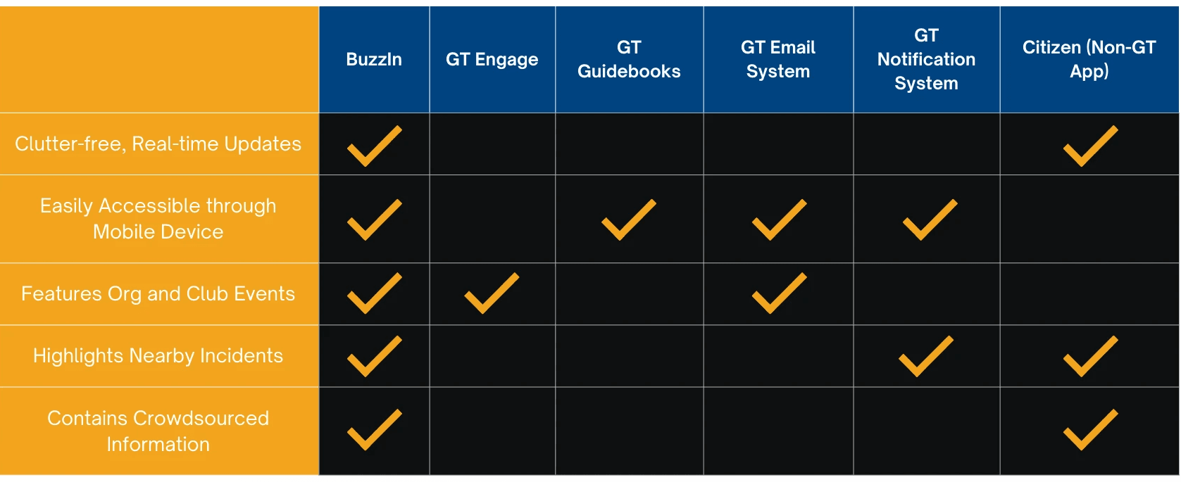 Student use of GT Event apps and other third-party apps was found to be negligible and we noted an average satisfaction with the current system.