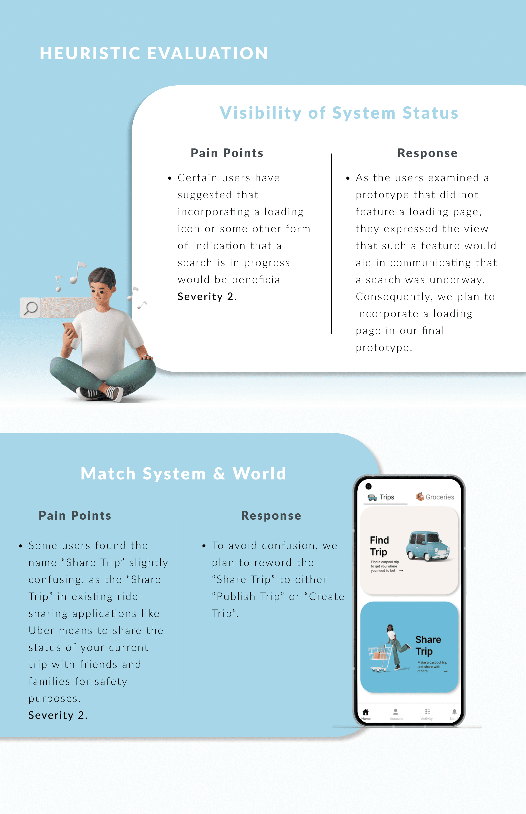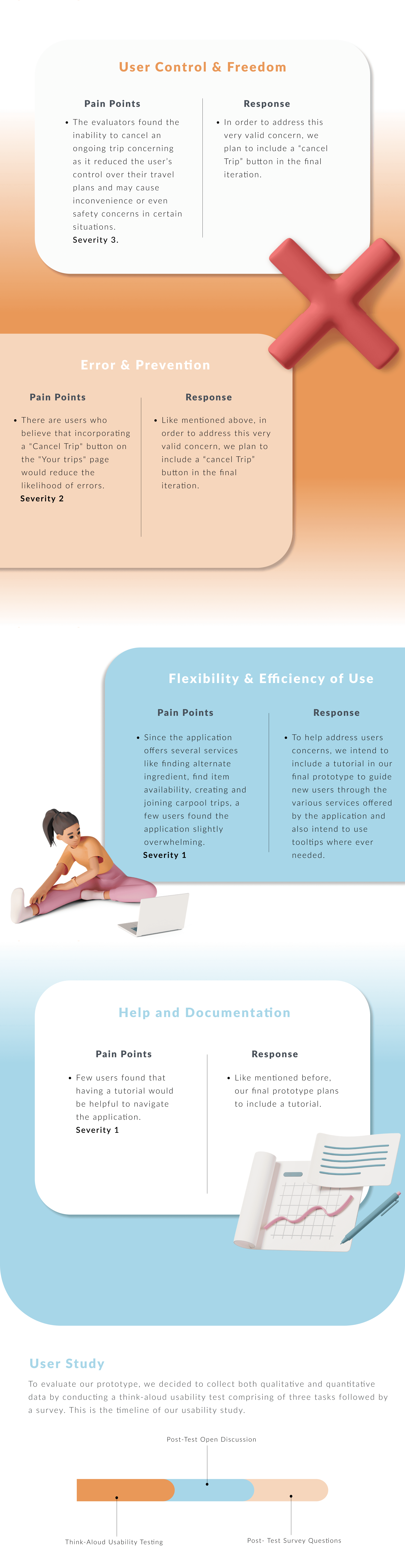 We also conducted a heuristic evaluation of the app. We then incorporated the feedback into the final prototype.