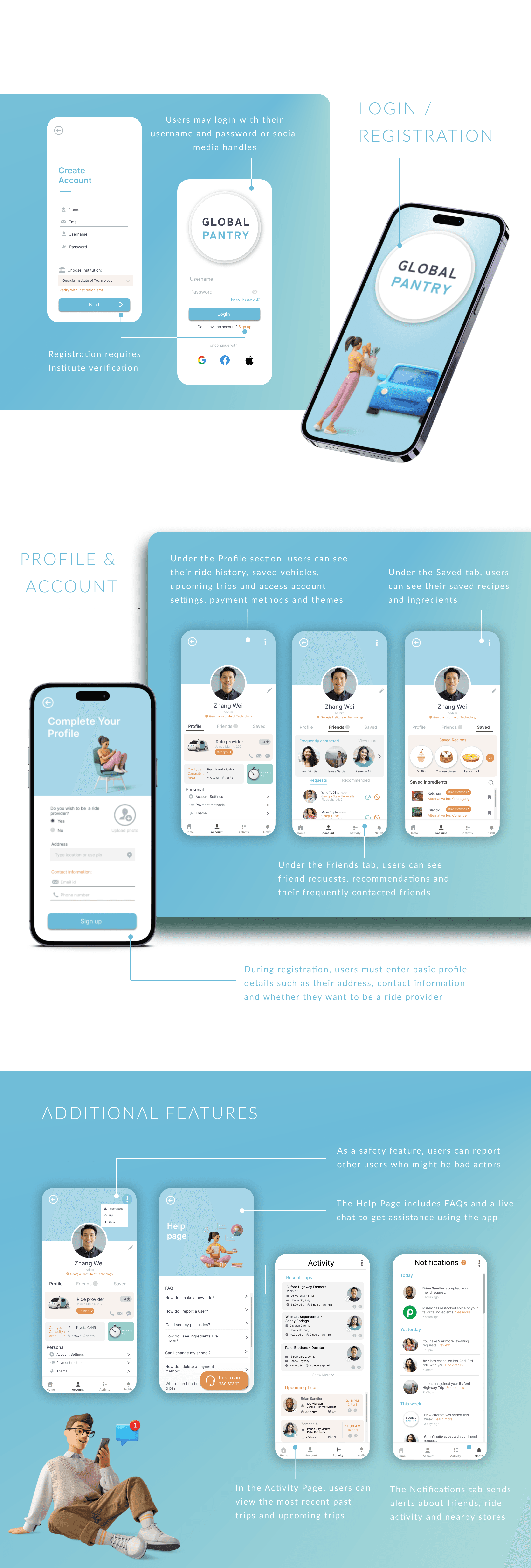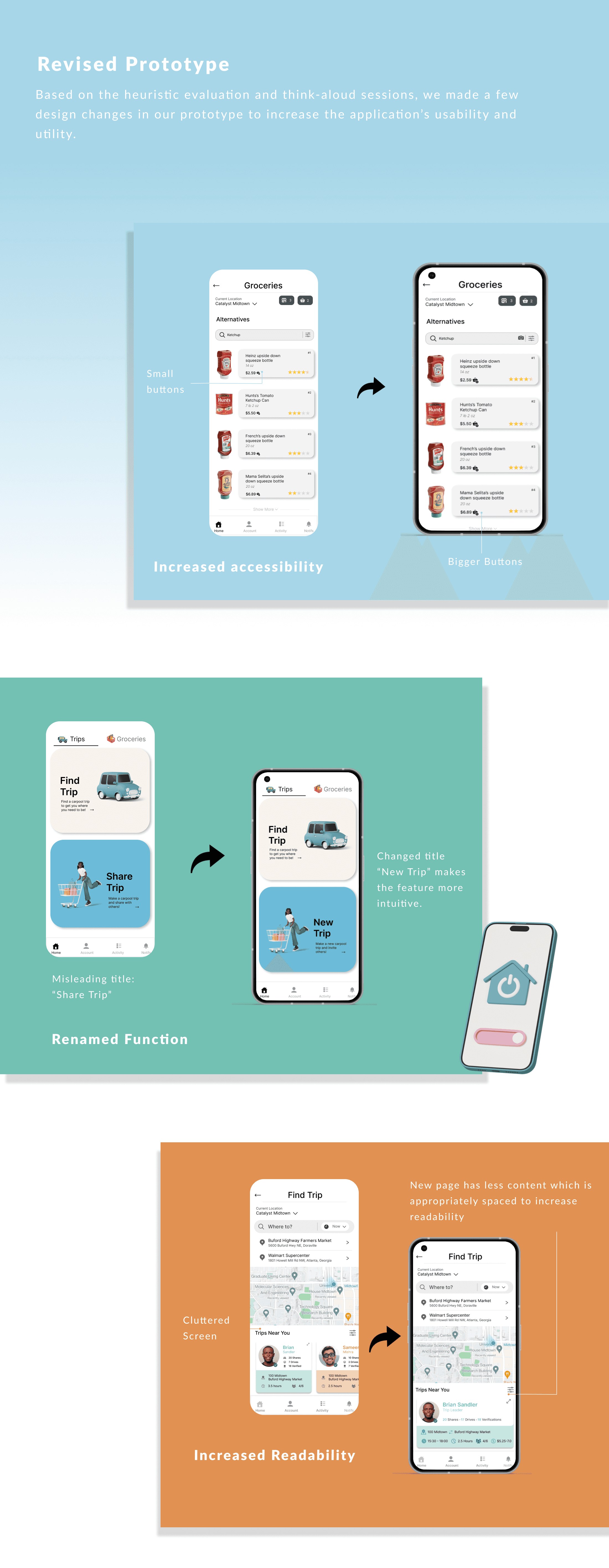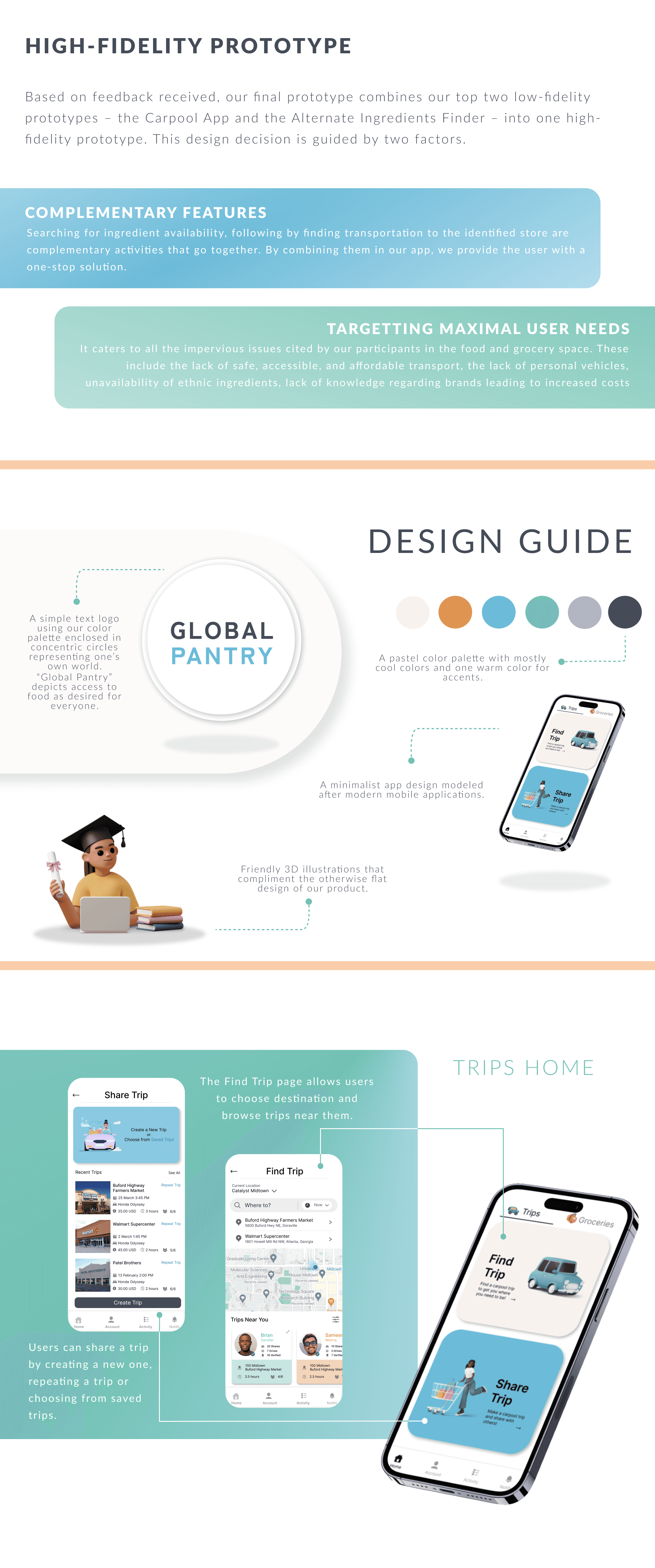 Wireframing/Prototyping: I worked on the wireframes and high-fidelity prototype for the carpool part of the app.