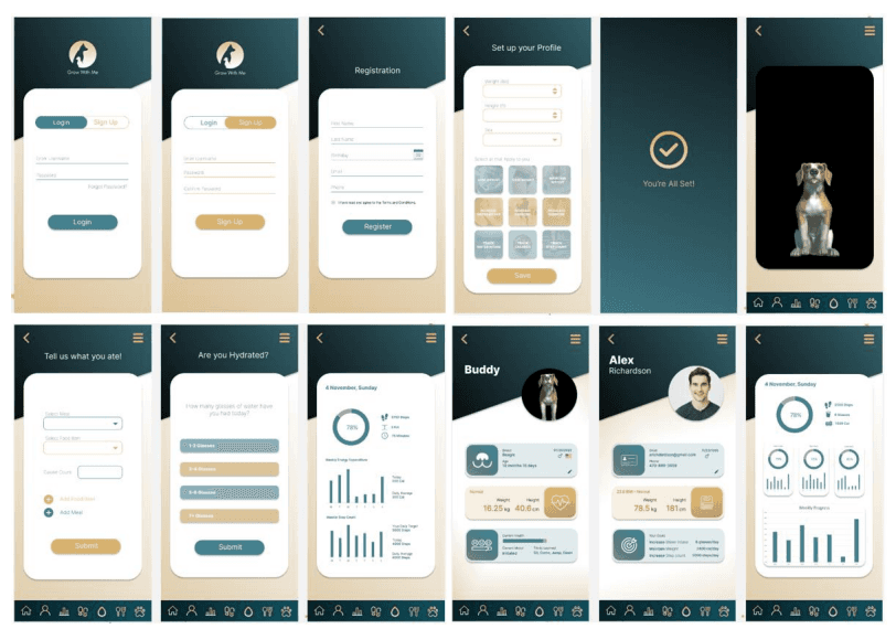 In this application, the user has a pet AR dog and the user’s health data is directly correlated with their pet’s health. The user’s progress towards their goals determines their dog’s health and mood. As a user uncovers new milestones, their dog can learn new tricks.